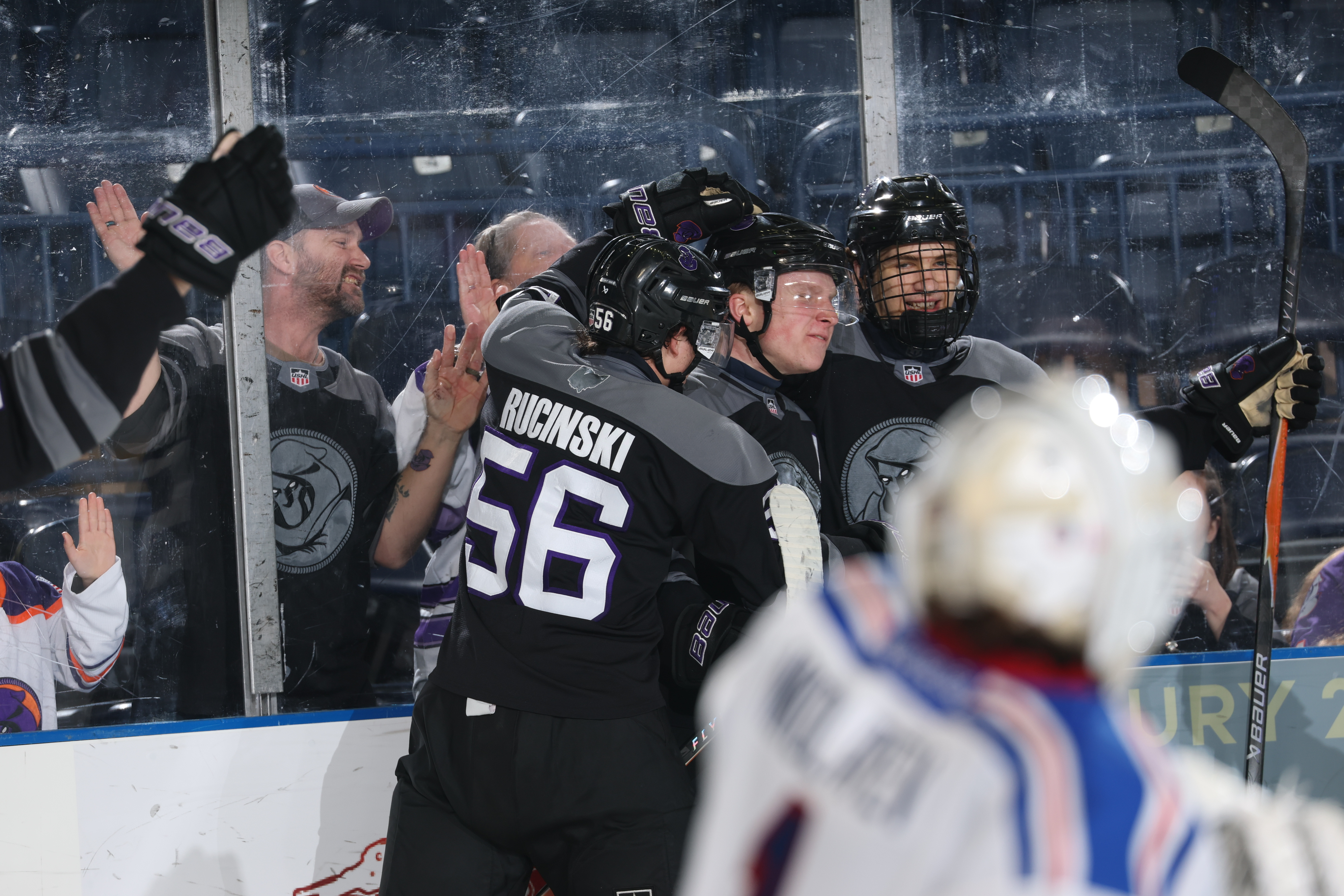Youngstown Phantoms' Ryan Rucinski with teammates on game night